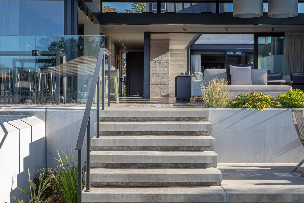 The detailing is exceptional and took incredible skill to fold the steel window surrounds and create the concrete formed walls. Bespoke Interior Design selected all exterior finishes.